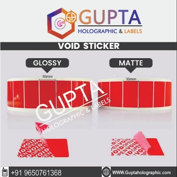Gupta Holographic & Lables in Delhi provides durable warranty void sticker solutions designed for modern electronic and industrial products. The labels are created using tamper evident technology so that removal attempts leave a visible mark.
